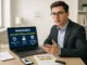 Two professionals reviewing a casino bonus checklist and wagering infographic.